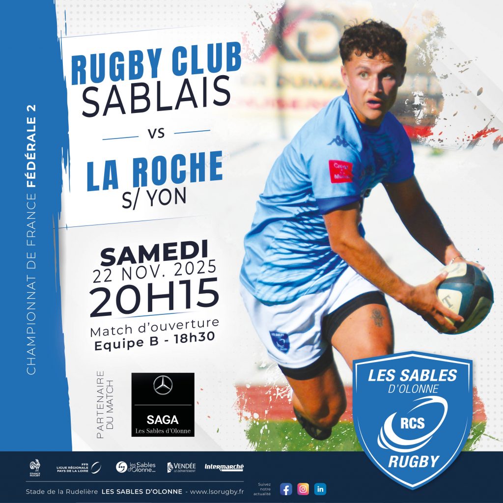 Nous vous attendons nombreux Samedi 22 Novembre pour la rencontre RC Sablais vs FCY La Roche s/Yon !
